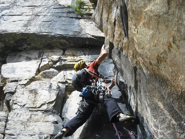 otro lado de la laja pasando por debajo y continuando por un feo diedro se